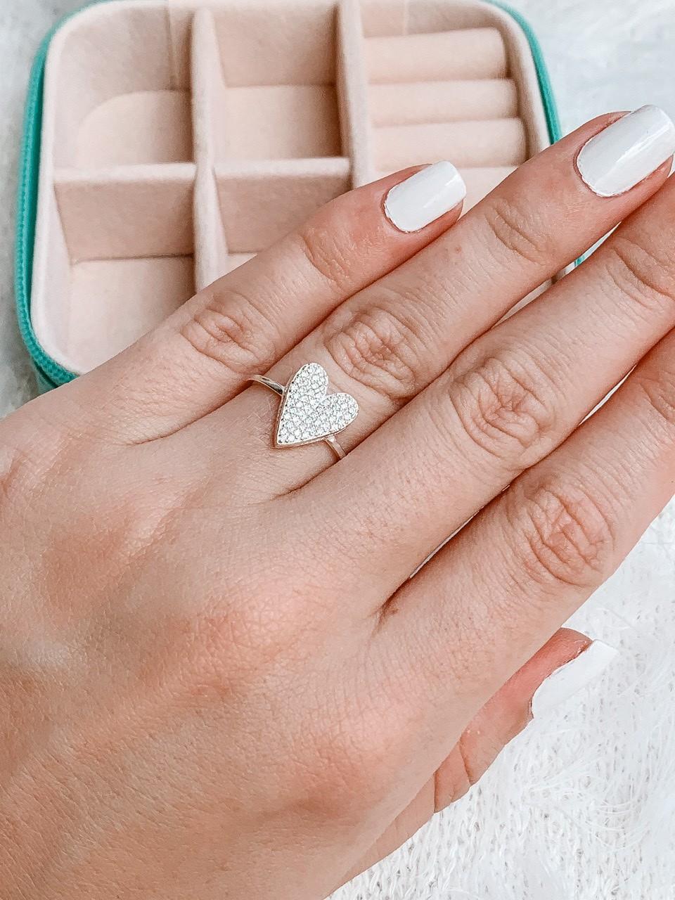 Anel de Prata Coração Cravejado