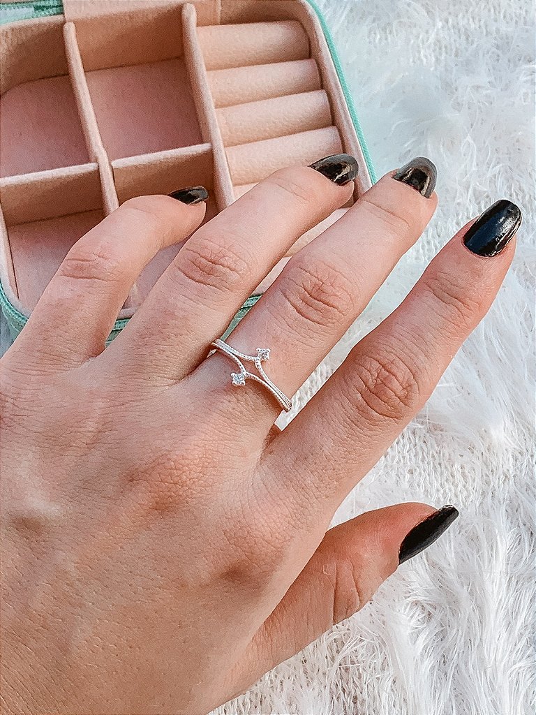 Anel de Prata Ponta Zircônias