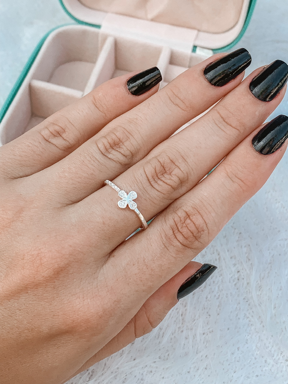 Anel de Prata Trevo Cravejado