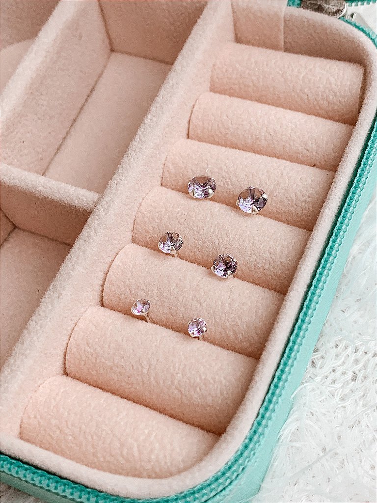 Três pares de brinco confeccionados em prata 925 e o certificado de autenticidade.