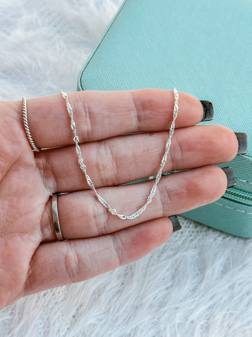 Um colar confeccionado em prata 925 e o certificado de autenticidade.