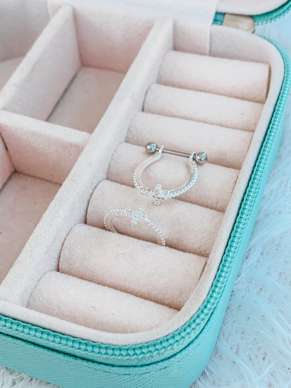 Um piercing confeccionado em prata 925 e o certificado de autenticidade.