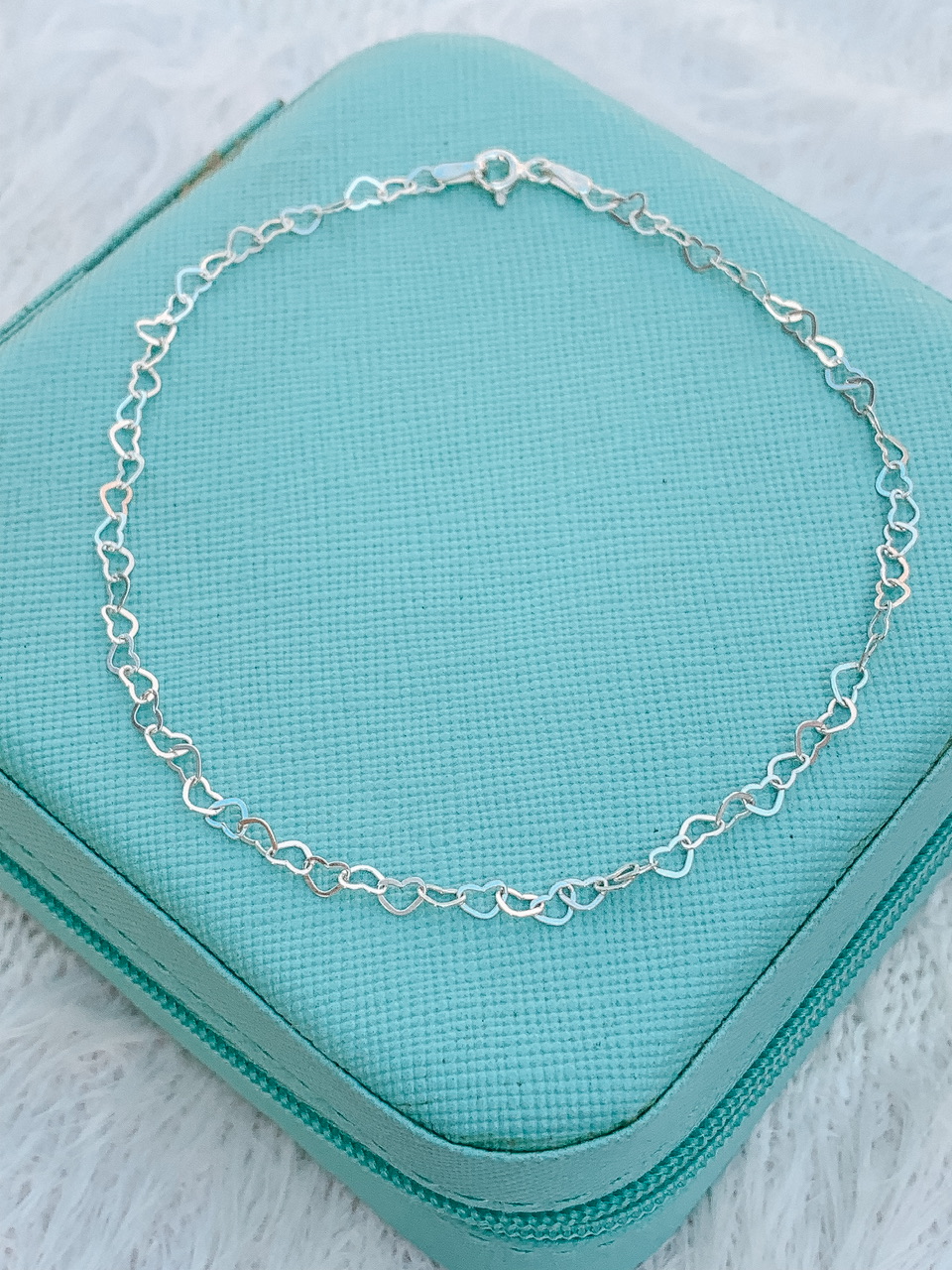 Uma tornozeleira confeccionada em prata 925 e o certificado de autenticidade.